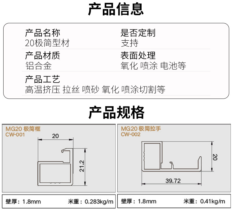 Door and window profiles, light luxury aluminum profiles for wardrobe swing glas