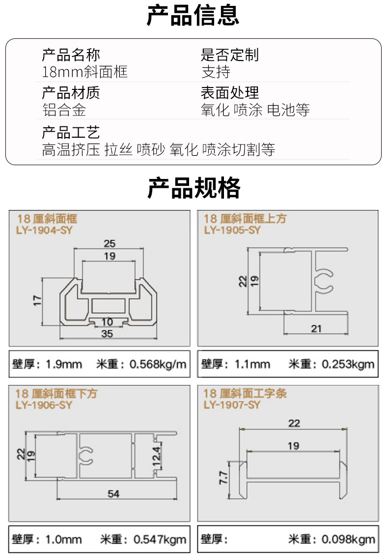 Aluminum alloy mobile door profile 18mm inclined surface, frame door aluminum al 日期:2025-08-11 15:56:33 / 人气:194