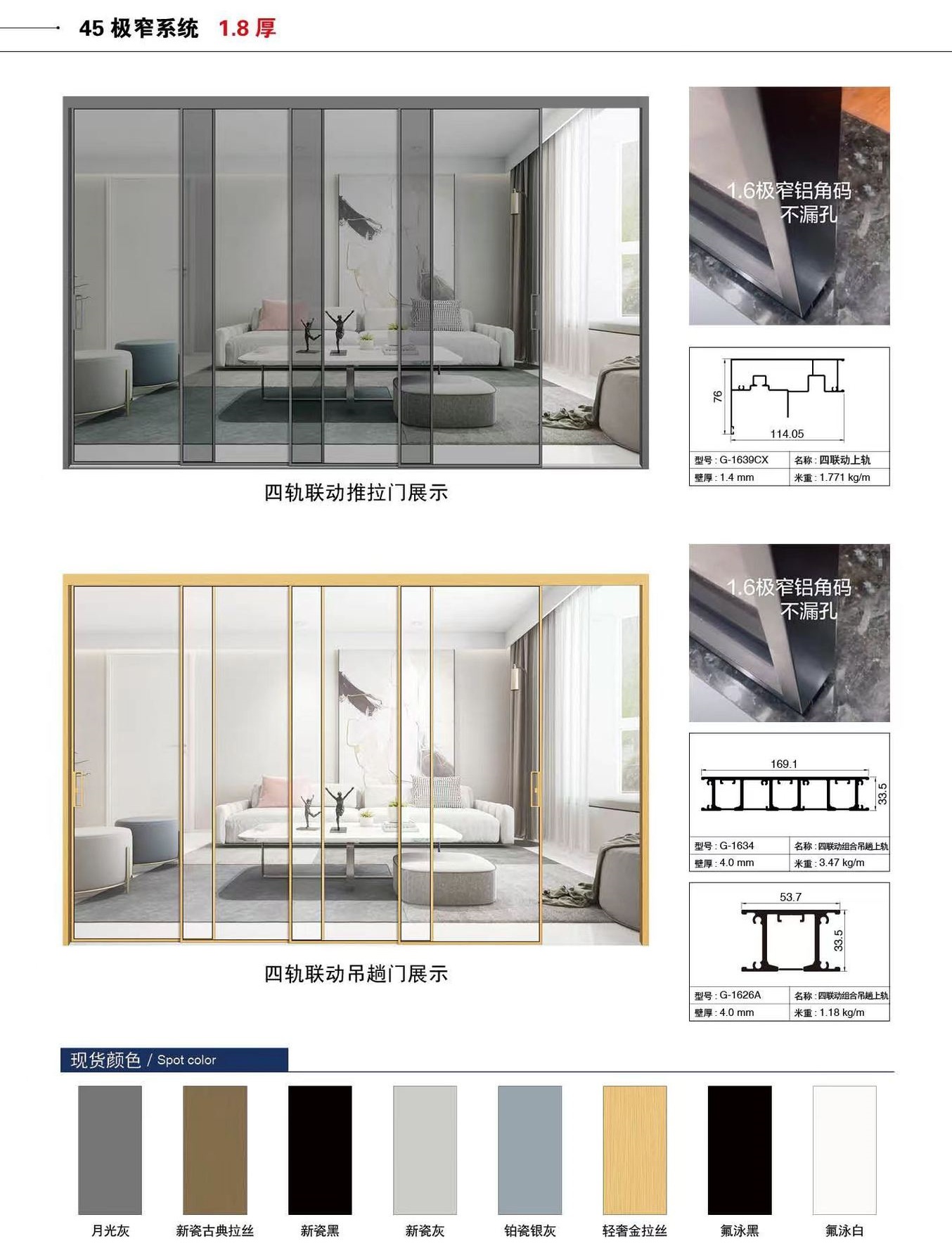 此次推出的极窄平开门、厨房阳台推拉门及联动门铝合金门框铝型材,是河北夏洛特建材结合市场需求与技术创新的核心产品。产品采用高标号 6063-T5 铝合金材质,通过精密挤出工艺打造,边框宽度仅 16-20mm,在保持极窄视觉效果的同时,兼具超强承重与抗变形能力,完美解决传统铝型材边框笨重、空间利用率低的痛点。表面处理环节依托公司先进的涂装生产线,提供阳极氧化、粉末喷涂等多种工艺选择,色彩涵盖月光灰、氟泳黑、铂瓷银灰等热门色系,适配不同家居风格需求。