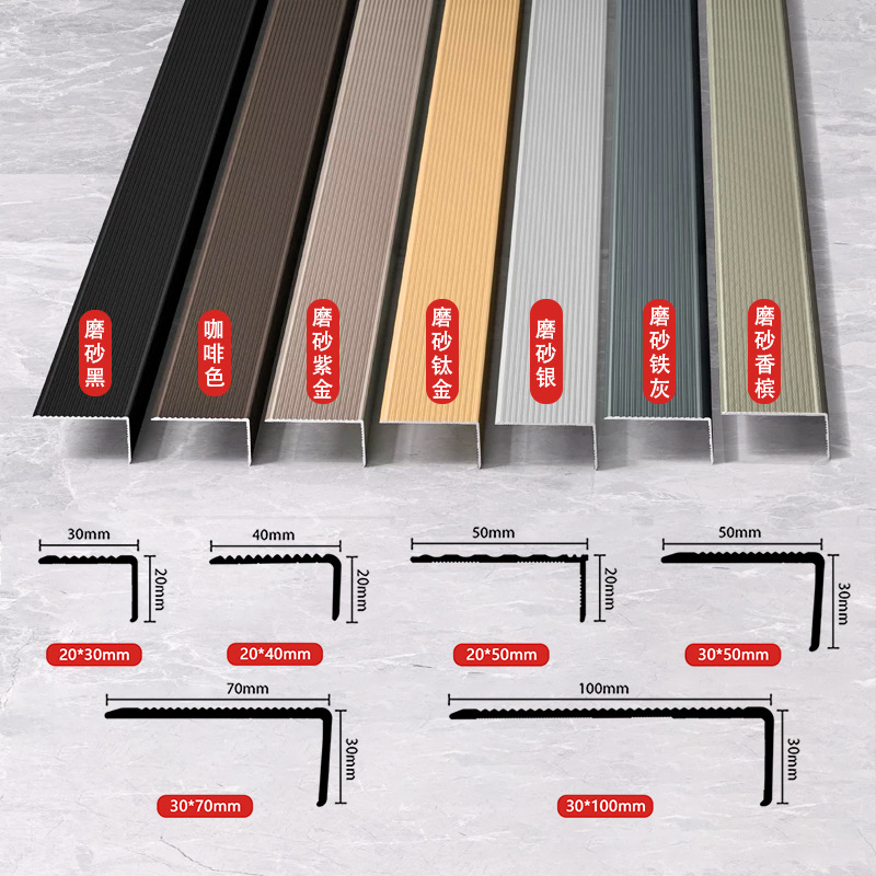万能 L 型踏步压条是河北夏洛特建材的匠心之作,一体成型的 L 型结构兼顾防滑与护边双重功能,窄边约 2 公分可紧密贴合台阶侧面,有效保护瓷砖、大理石台阶边缘不被磕碰损坏,避免出现边缘破损、棱角磨损等问题,延长台阶整体使用寿命。该款铝合金 L 型踏步压条边缘采用圆角处理,无尖锐棱角,既防止划伤行人、钩挂衣物,又能遮盖台阶施工中的细微瑕疵,让台阶整体更显平整美观。同时,产品支持定尺 6 米定制,可根据装修需求灵活裁剪,适配不同尺寸、材质的梯面,施工时可采用胶粘或螺丝固定两种方式,操作简便且牢固可靠,大幅降低施工返工风险。